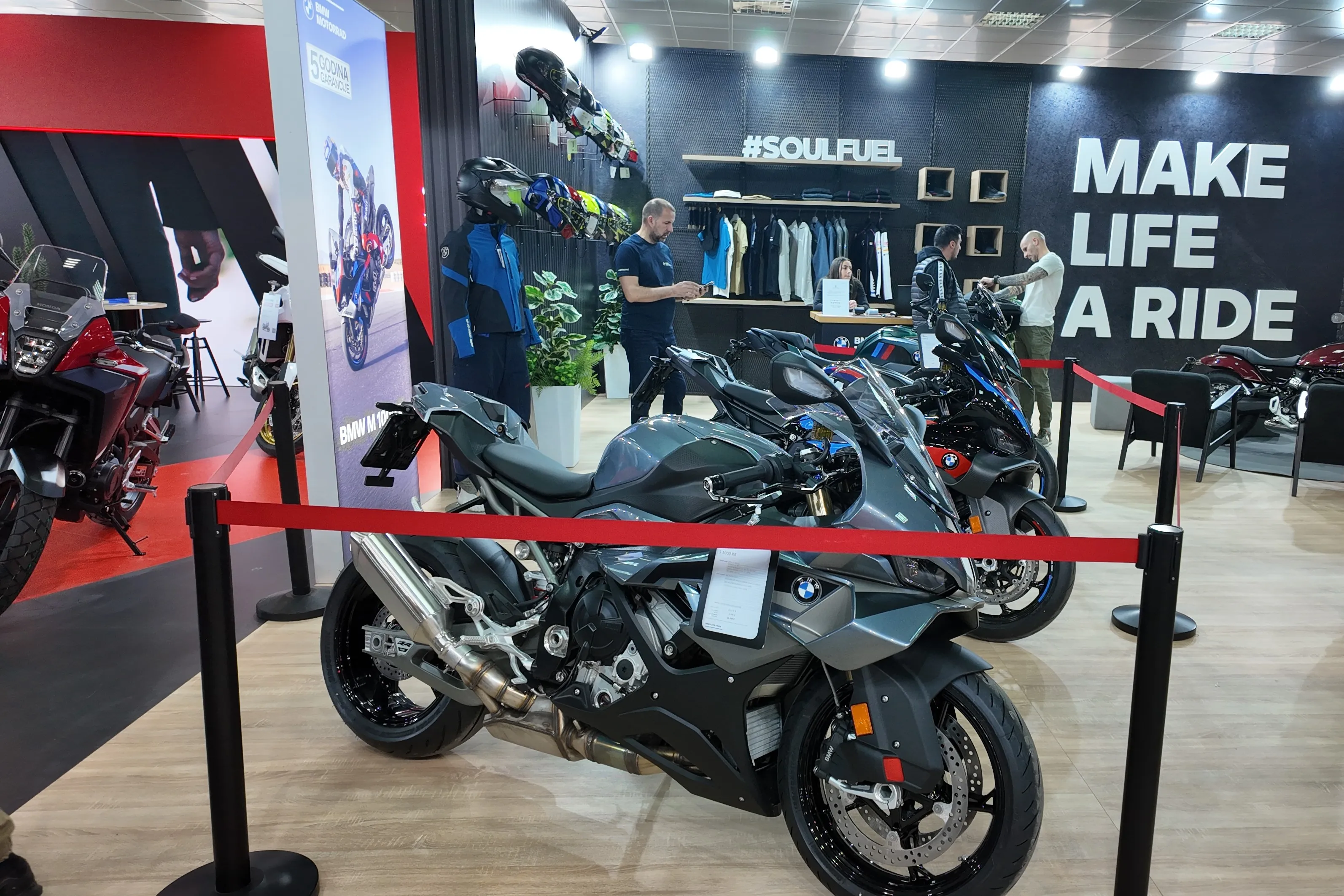 Kreiranje vizuelno upečatljive prezentacije motocikala kroz pažljivo usklađivanje grafičkih elemenata, brendinga i izložbenih površina.
